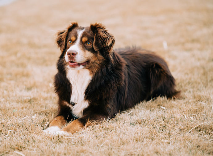 Boston comes to us from Rafter C Aussies in Utah. He comes from a long line of Champions and is a perfect gentleman. He is extremely athletic, loves to play, and is a great companion. He goes on 5 mile runs with me all the time and will play fetch and frisbee all day long. He loves to learn new tricks and is super smart. He has given us gorgeous litters and we love having him as part of our family.